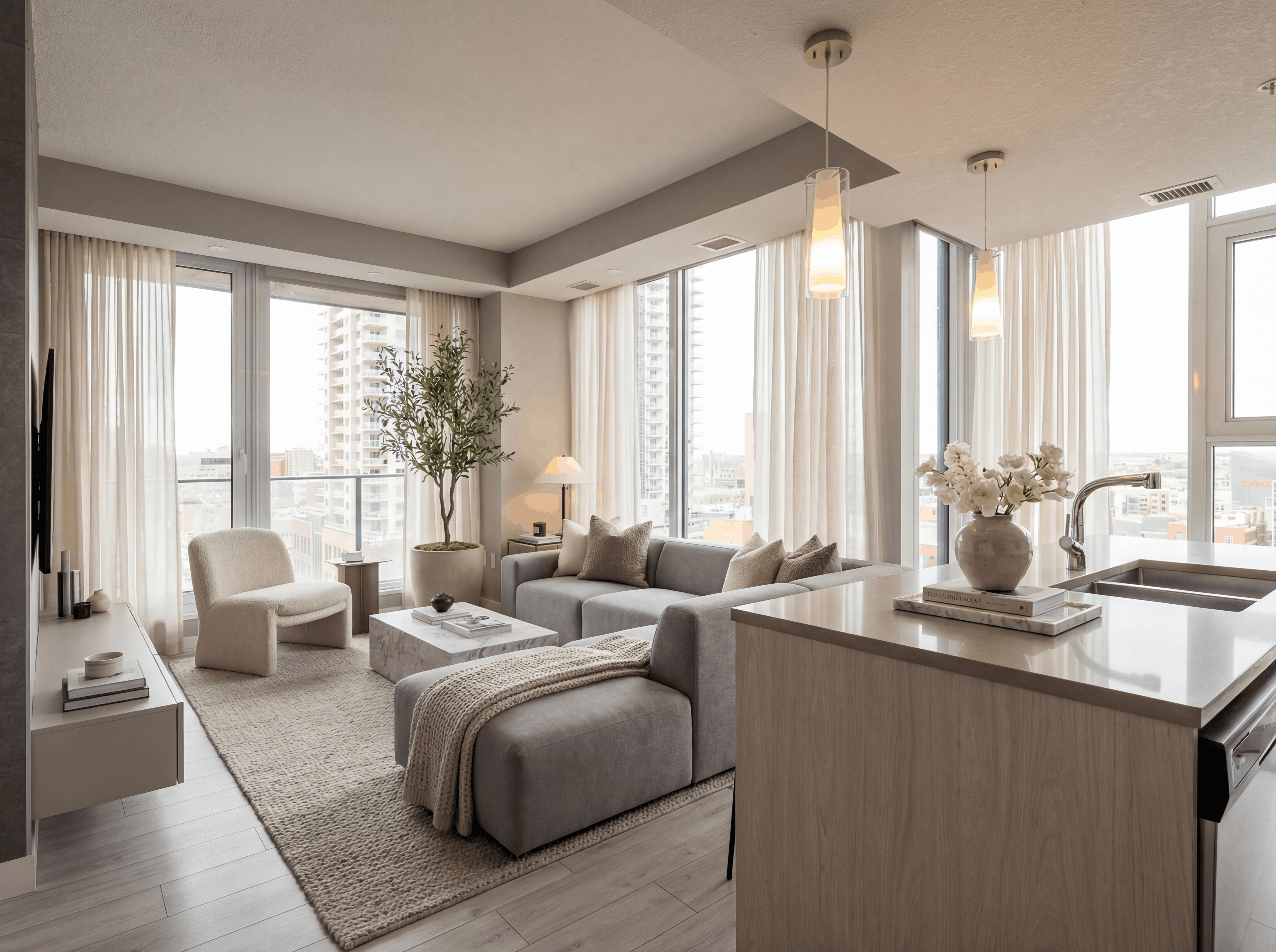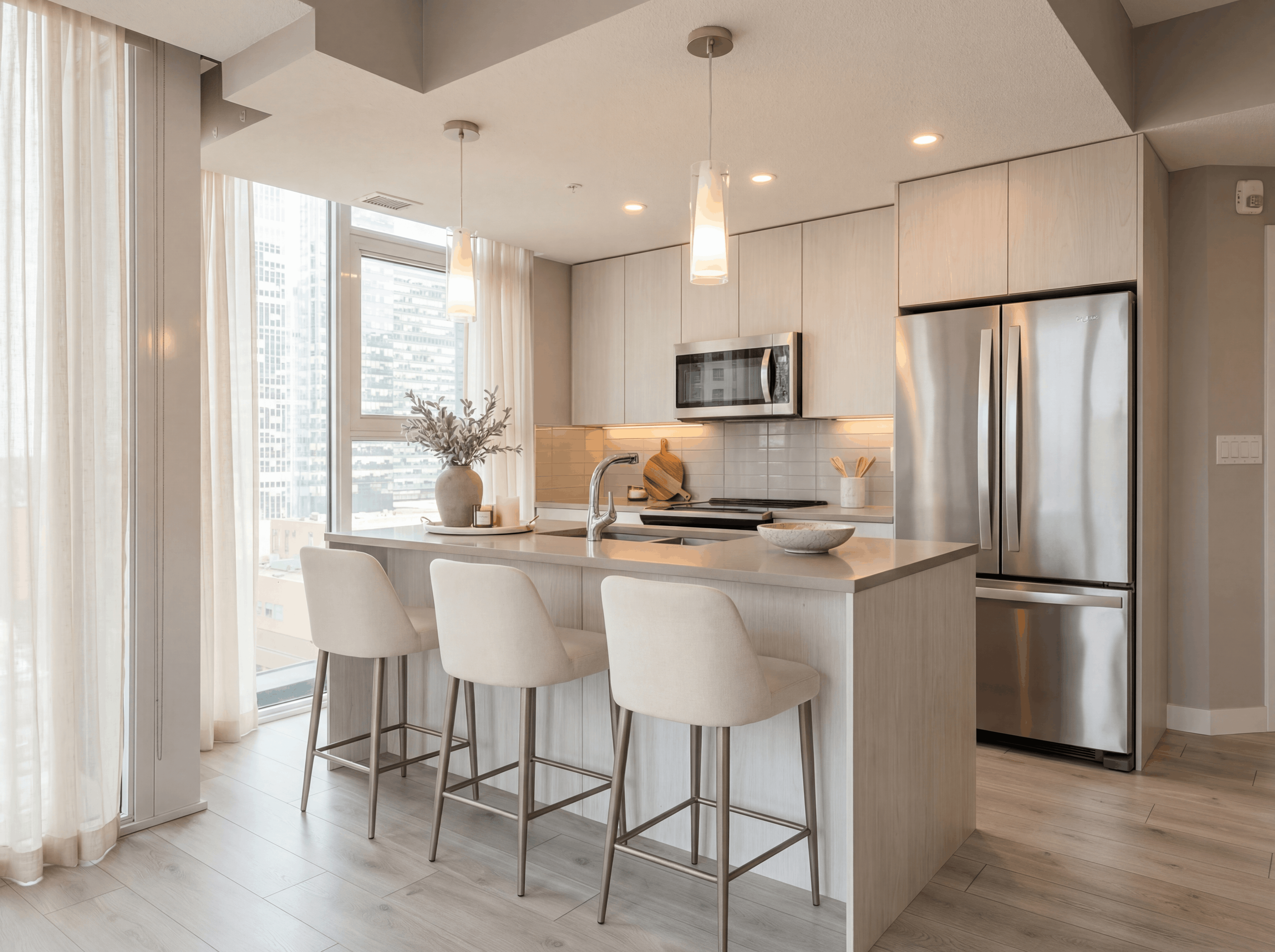 - MODERN FINISHES - Quartz counters, neutral color packages
